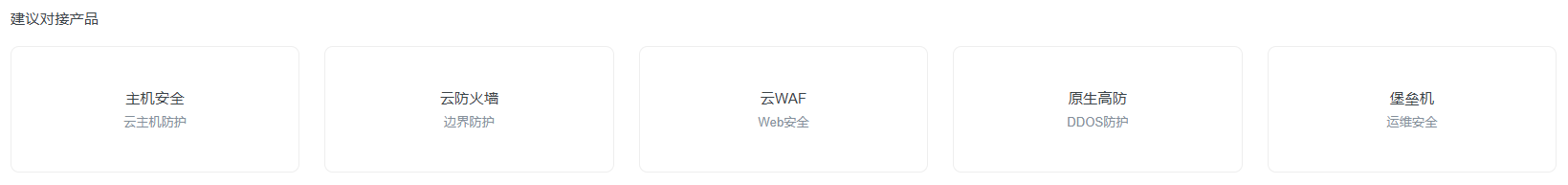 页面展示主机安全、云防火墙等配套安全产品推荐卡片,点击卡片可一键跳转至金山云官网对应产品详情页,了解产品信息及购买指引。