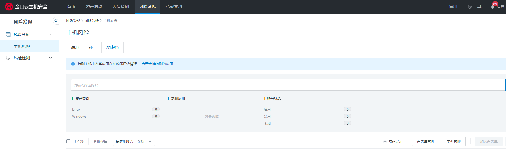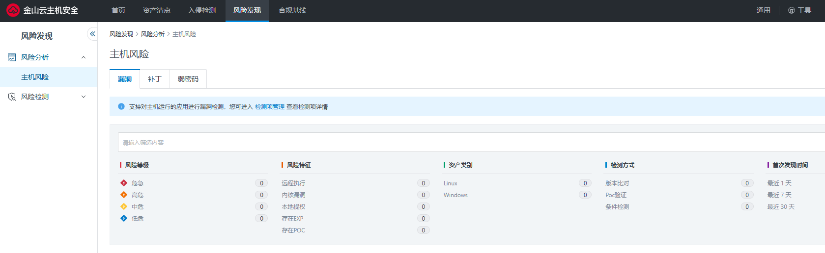 风险管理页可对以下安全风险进行集中管控,实现精准识别: