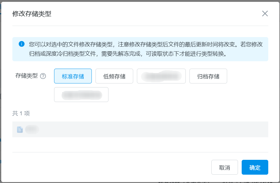 通过控制台修改文件存储类型时,单次批量操作最多支持30个文件。具体操作步骤如下所示。