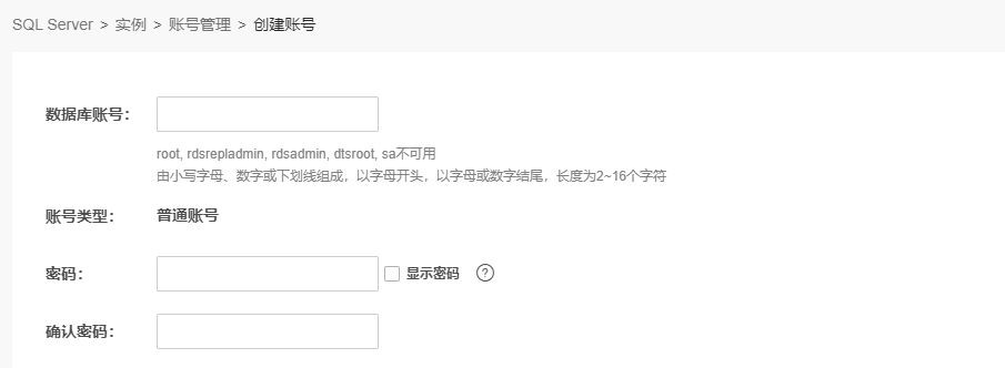 SQL Server实例支持两种数据库账号:管理员和普通账号。