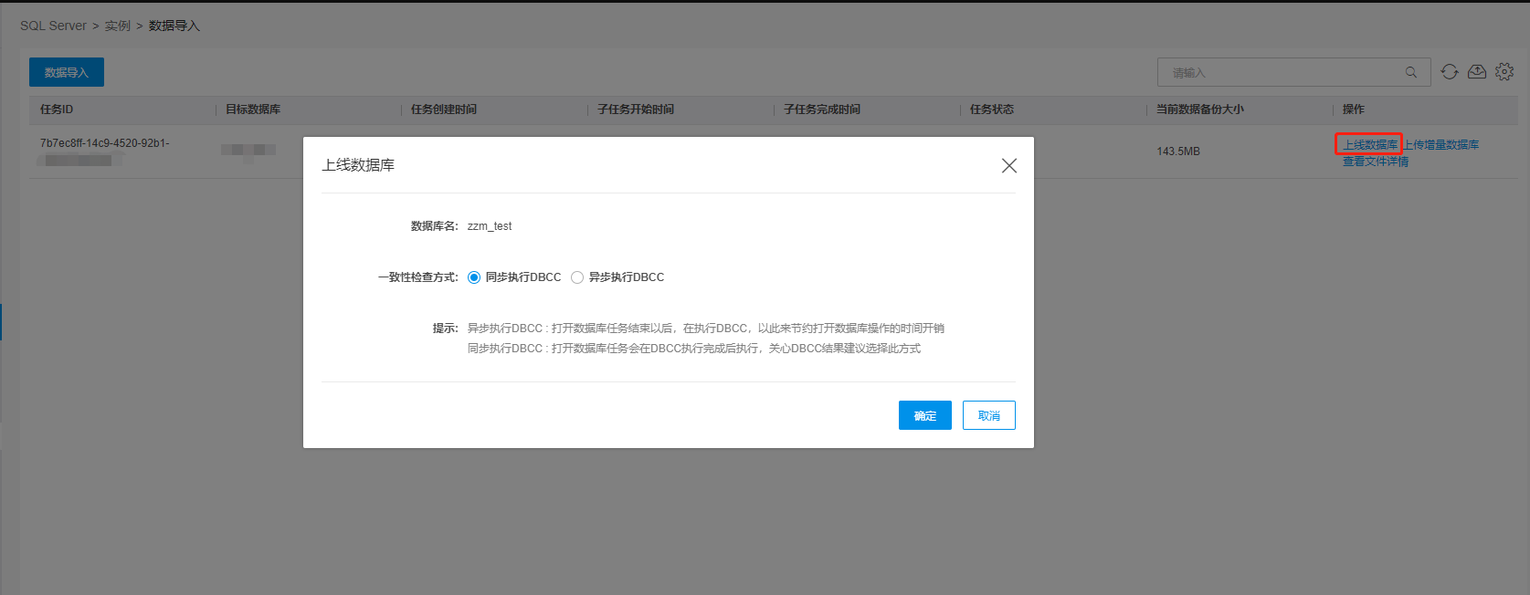 如果同名的数据库已经存在,请先备份该数据库,删除该数据库,再进行数据备份。