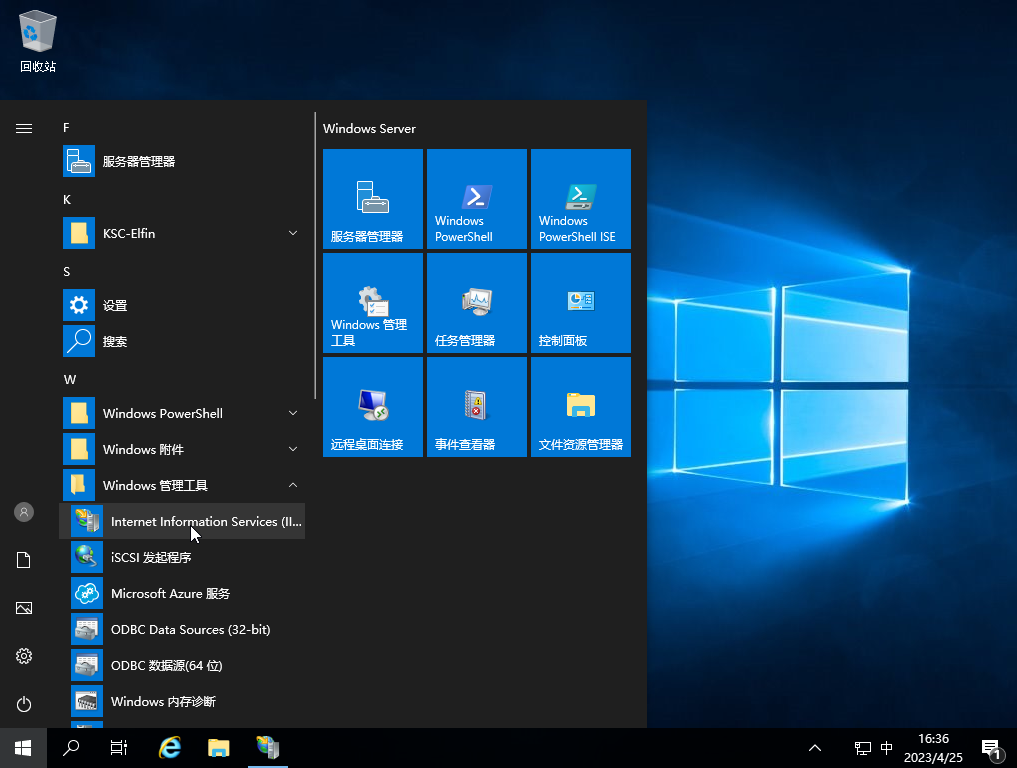 点击“开始”-“Windows管理工具”-“Internet Information Services(IIS)管理器”: