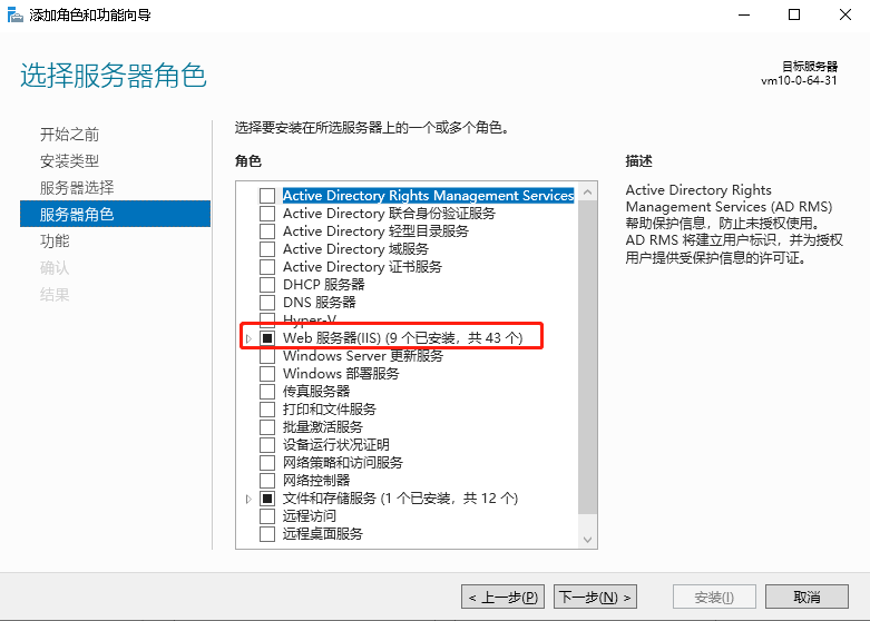 选择“添加角色和功能”(如果没有添加角色可能是服务器管理器没有读取完全,稍等片刻即可)