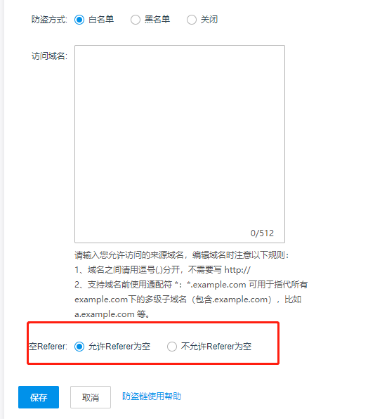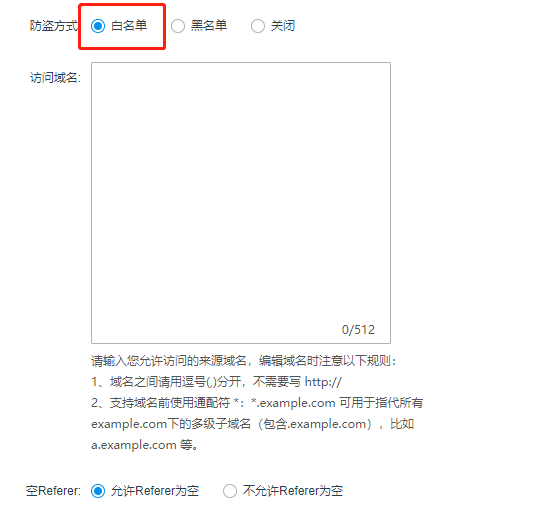 由于有些合法的请求是不会带referer来源头部的,所以有时候不能拒绝来源头部(referer)为空的请求,在KS3中,我们还提供了手动设置referer的选项。