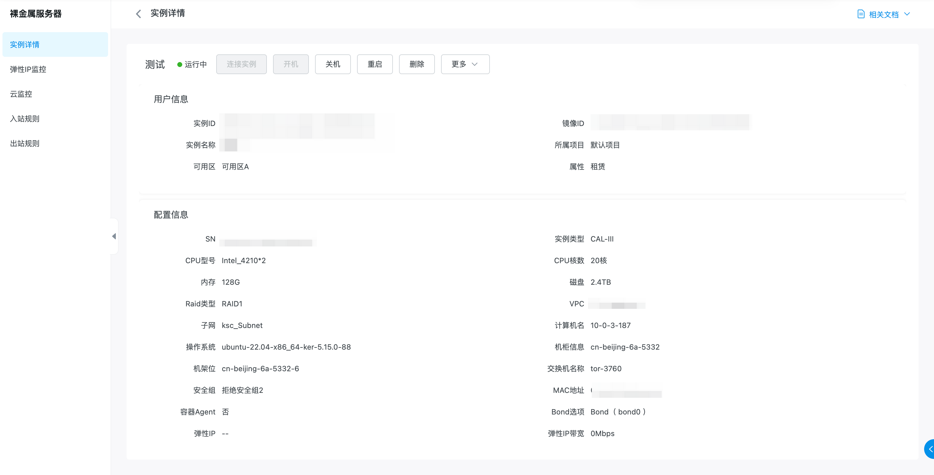 在列表中,选择想要查看的GPU裸金属服务器,可查看裸金属实例的详情。